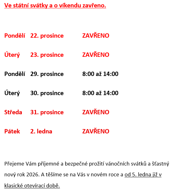 Drtiče pařezů DIPPERFOX22.11.2023Přídavná zařízení CM Srl22.7.2025 Show all OTEVÍRACÍ DOBA O SVÁTCÍCH